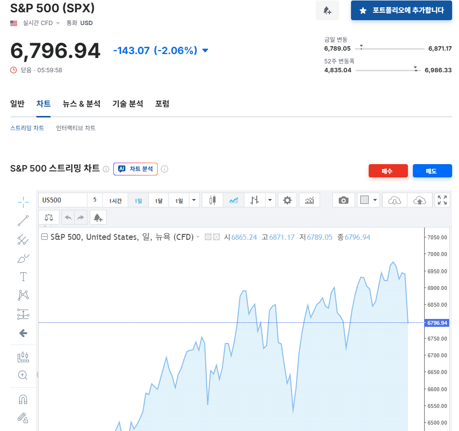 - S&P500: ์ฝ 1.8% ํ๋ฝ