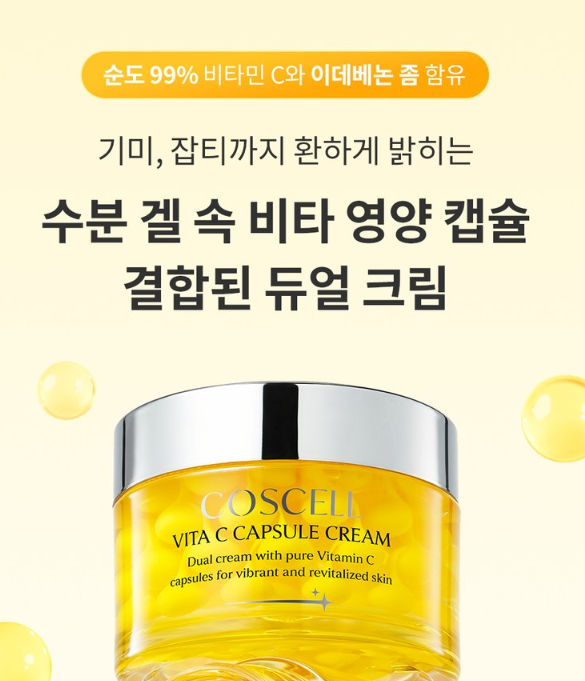 [코스셀] 비타C 캡슐 크림 50ml 잡티 케어 미백 주름 개선 수분 기미 케어 브라이트닝 리프팅 크림