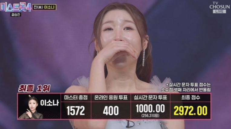 이소나는 결과 발표 순간 눈물을 터뜨리며 감정을 숨기지 못했습니다.
