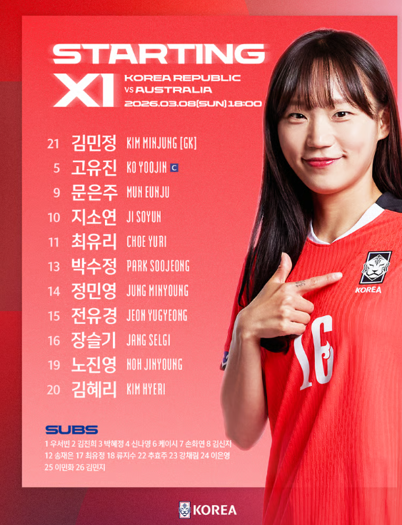 수비 라인은 장슬기와 김혜리 등 경험 많은 선수들이 지켰다.