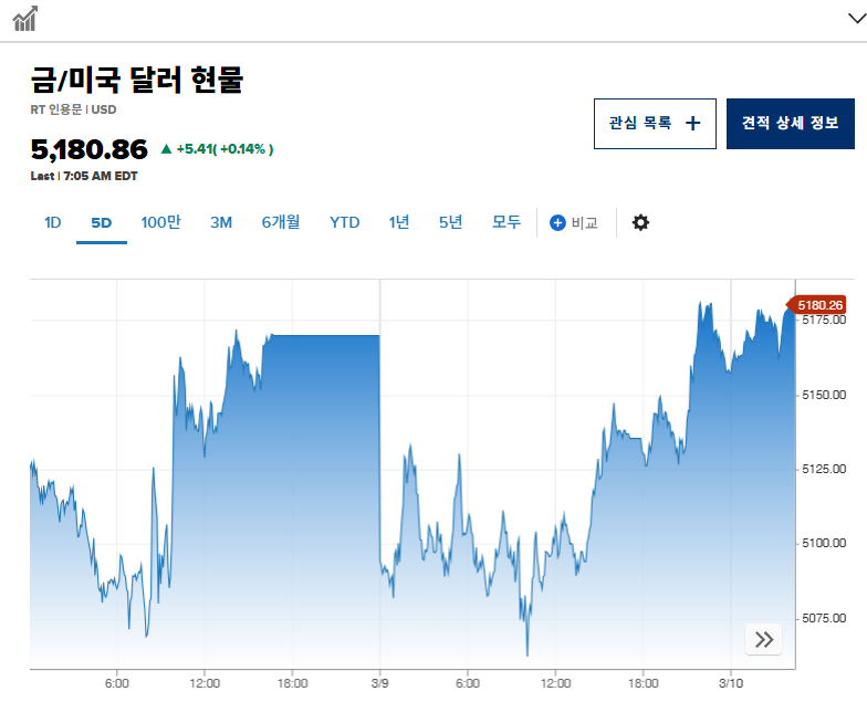 그러나 이번 이란 관련 분쟁에서는 예상과 다르게 금 가격이 큰 폭으로 오르지 않는 모습이 나타나고 있습니다.