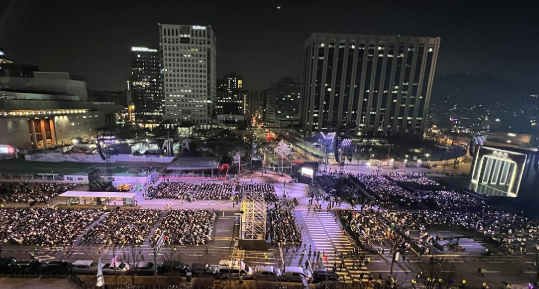 보라색 응원봉으로 물든 광화문 광장은 장관을 연출했습니다.