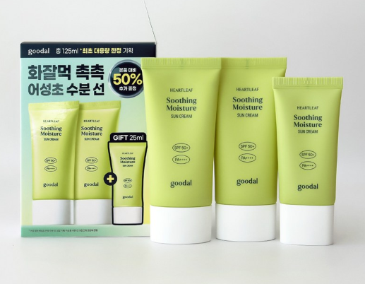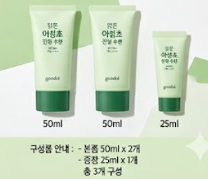 구달 맑은 어성초 진정 수분 선크림 50ml 1+1 기획 (+25ml 미니어처), 50ml, 2개 - 선케어/선크림/선로션