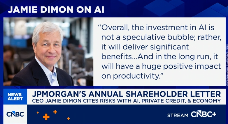 다이먼은 AI가 금융 산업뿐 아니라 사회 전반을 크게 바꿀 것이라고 전망했습니다.